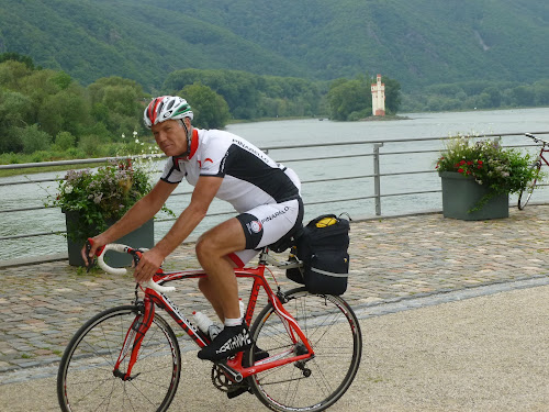 Het is hier behoorlijk druk, toeristisch. maar tot Koblenz is er direct langs de rivier een fietspad aangelegd. En ik ben niet de enige fietser: meerdere keren kom ik zwaar bepakte trekkers tegen of haal ze in, maar ook veel 60-plussers op gehuurdenfietsen. Ze bevestigen het beeld dat ik heb van "Rijntoerisme".